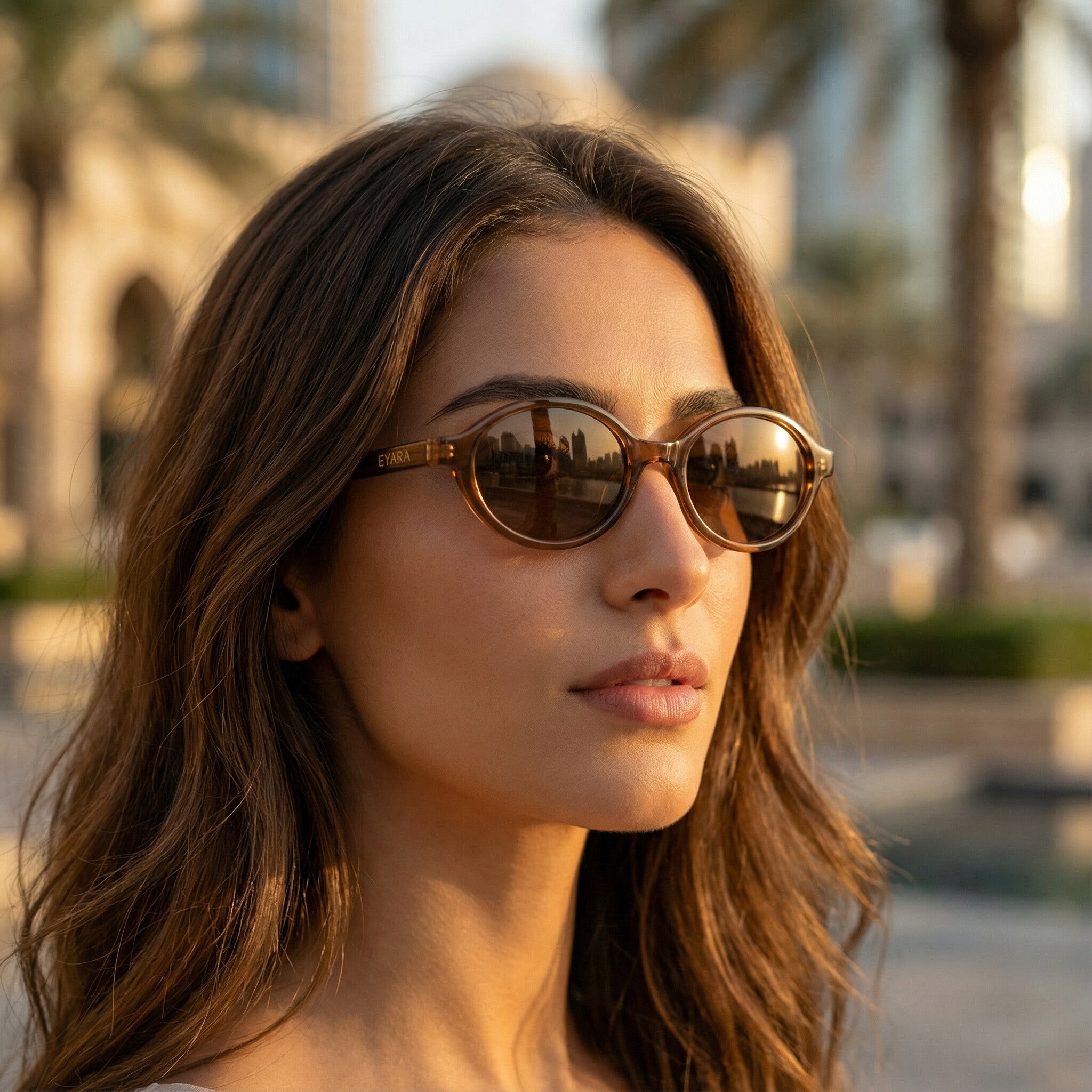 • In tegenstelling tot standaard zonnebrillen is EYARA ontworpen met aandacht voor hoe een zonnebril onder een hijab wordt gedragen. Denk aan een slanker ontwerp, kortere pootjes en een verfijnde constructie details die je voelt zodra je hem draagt.